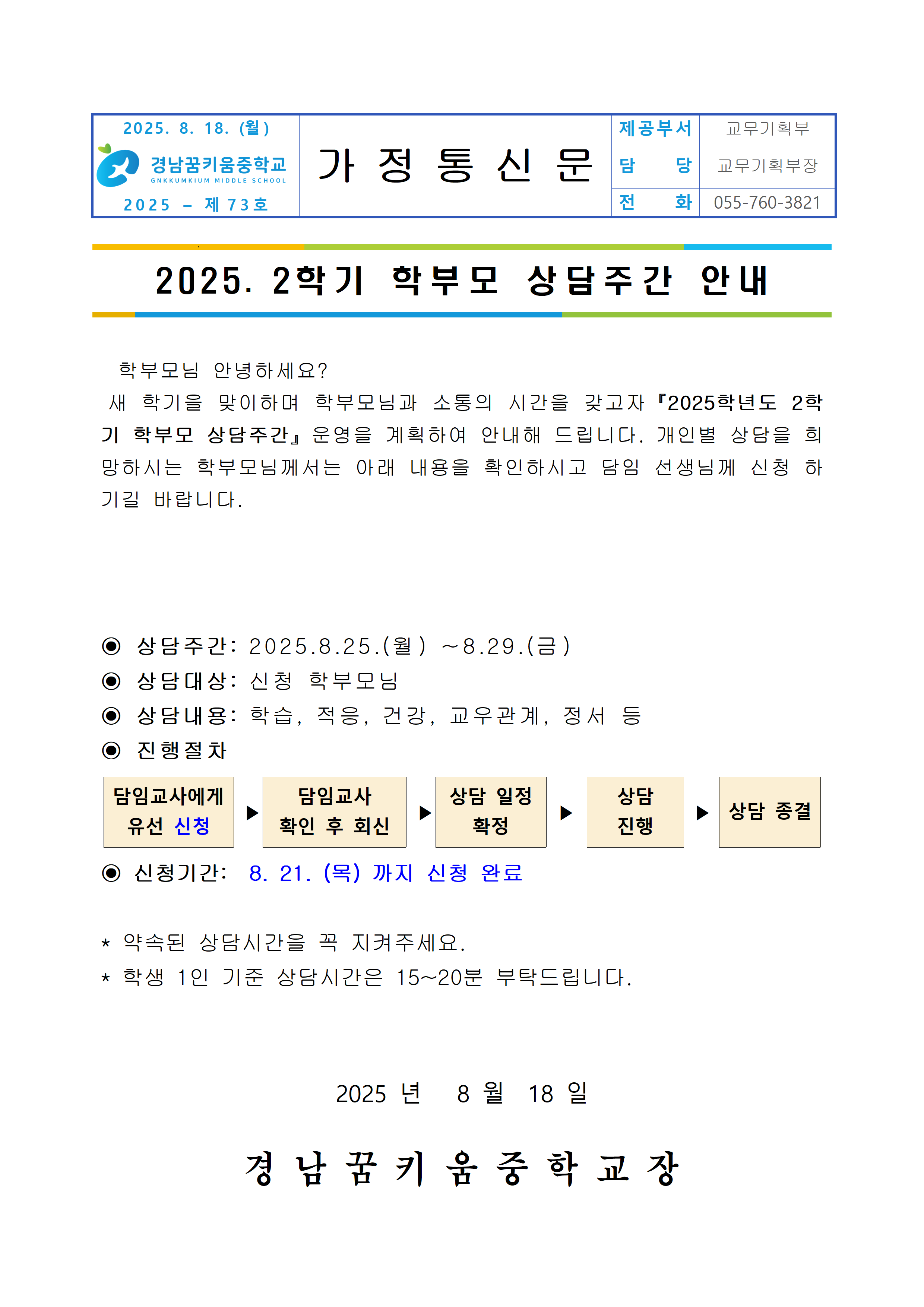 [2025-73] 2학기 학부모 상담주간 안내