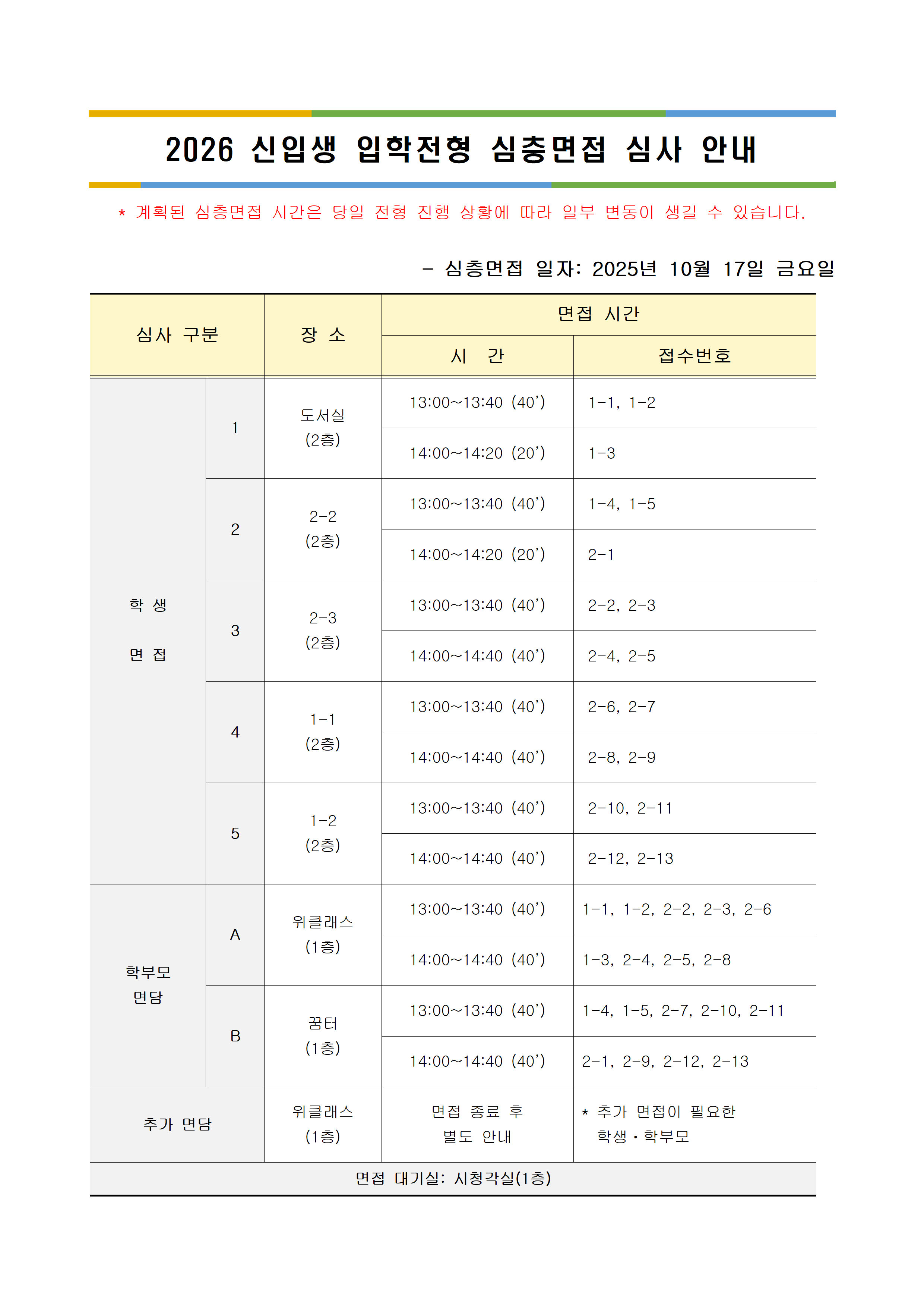 <2026 정시> 심층 면접 일정 및 시간 안내 드립니다.